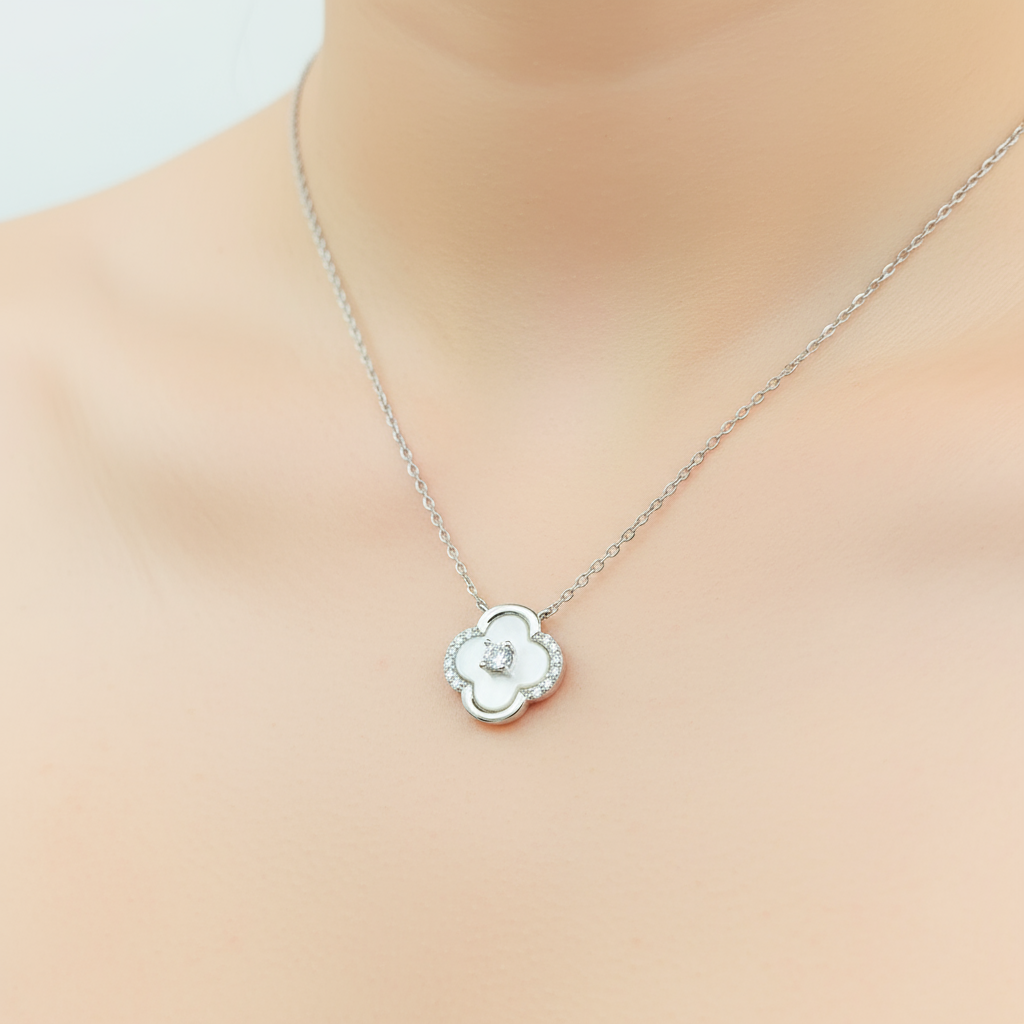 The mother of pearl clover (12mm) settingon sterling silver is the perfect harmony of the classic French design and modernisation. This timeless piece showcasing the pure beauty mother of pearl.